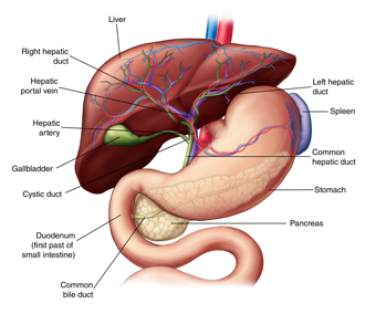 The biliary tract (also referred to as the biliary tree or biliary system) is a system of tubular structures (called bile ducts) that lead from the liver to the gallbladder and eventually the small intestine. The biliary system's main function includes the following: Niu h, gao w, cheng j, et al. The liver, gallbladder, and biliary tree can be imaged from a number of approaches (subcostal, intercostal, and flank) with the patient in a variety of positions (supine, semirecumbent, erect, left lateral decubitus, and prone). Emergency endoscopic or percutaneous biliary drainage is necessary for decompression.